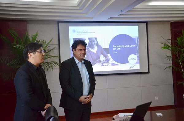 周大雙就德國斯圖加特大學自動化研究院研究方向和德國工業4.0應用性技術做介紹。他表示,研究院以增強研發能力、開展相關技術方面的人才培訓、為中小型企業提供咨詢和支持、吸引部分企業到合肥為主要目標,并希望將工業4.0生產系統孿生體和自主機器人物流運輸系統等模塊發展成熟并服務于地方企業。雅茲迪、茨姆曼、席勒和格斯林就工業4.0物聯網系統下個性化制造和模塊化制造、數字化產品研發和產線規劃、物流4.0自主訂單作業控制和智能群體等方面做詳細介紹。