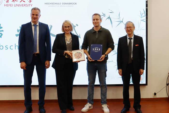 王其東代表學(xué)校對卡塔琳娜·普特市長一行表示熱烈的歡迎,對徽文化秋令營的成功舉辦表示祝賀。他表示,此次交流中德學(xué)生建立起深厚情誼,為日后攜手書寫兩校友誼新篇章打下堅實基礎(chǔ),為雙方未來教育、經(jīng)濟(jì)、文化發(fā)展注入了生機(jī)與活力。奧斯納布呂克應(yīng)用科學(xué)大學(xué)校長亞歷山大·施梅曼先生在致辭中感嘆中國發(fā)展速度之快,同時也很高興看到合肥大學(xué)的高速發(fā)展變化,希望通過更多形式的交流活動來加深兩校友誼,深化合作與發(fā)展。德國奧斯納布呂克應(yīng)用科學(xué)大學(xué)的學(xué)生代表伊爾薩比·拉德馬赫分享了在合肥大學(xué)交流期間的體驗與感悟,并表示會銘記這段美好回憶。