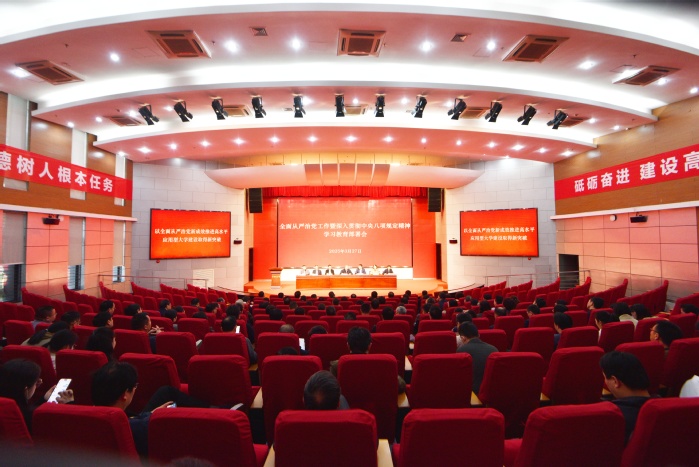 他強調,全面從嚴治黨,基礎在全面,關鍵在嚴,要害在治,全校上下要更加緊密地團結在以習近平同志為核心的黨中央周圍,切實把思想和行動統一到黨中央決策部署上來,以更高的站位、更實的舉措、更優的作風擔當作為,在新征程上自覺增強縱深推進全面從嚴治黨的責任感緊迫感,努力以全面從嚴治黨新成效推進高水平應用型大學建設取得新突破。