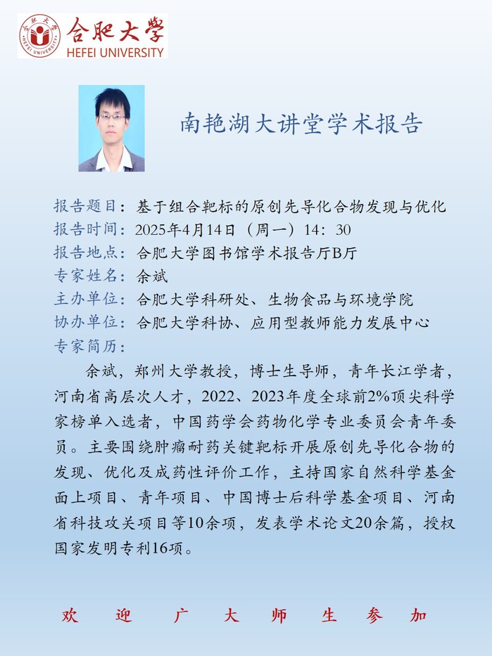 【南艷湖大講堂】基于組合靶標(biāo)的原創(chuàng)先導(dǎo)化合物發(fā)現(xiàn)與優(yōu)化