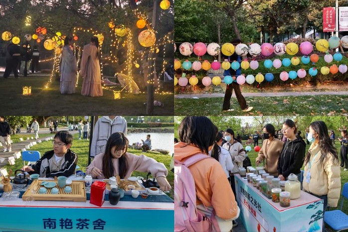 青衿漢宣社學子廣袖飄飄,自三期校園款款而行,漢服游園為活動拉開序幕。藝術樓前,一曲《高山流水》典雅古樸,《霓裳羽衣》演繹傳統(tǒng)與現代的完美交融。一期湖畔邊,電子愛好者協(xié)會流光溢彩的電子花燈引人駐足;南艷茶舍的學子們碾茶煮茗,體味“晴窗細乳戲分茶”的雅致。生物創(chuàng)新之光協(xié)會的佳釀、靈心居手工社的巧手生花、ART手繪協(xié)會的妙筆丹青,無不展現著傳統(tǒng)文化的當代活力。月上柳梢時,猜燈謎、放河燈等傳統(tǒng)活動將氣氛推向高潮。盞盞花燈隨波遠去,載著學子們的美好祈愿;笑語歡聲間,沙包投擲、尋寶探險等活動更添趣味。此次花燈節(jié)不僅豐富了校園文化生活,更讓傳統(tǒng)文化浸潤學生的心田。