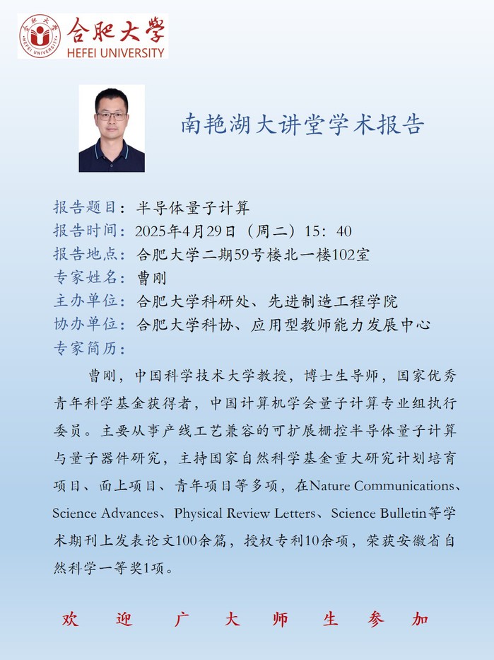 【南艷湖大講堂】半導(dǎo)體量子計(jì)算