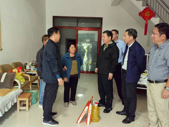 5月8日,周飛一行先后來到學(xué)校定點(diǎn)幫扶的惠廟村與陡張村,親切看望慰問駐惠廟村第一書記周全、駐陡張村第一書記王磊,走訪慰問了脫貧戶。在惠廟村,調(diào)研組參觀了銀發(fā)產(chǎn)業(yè)工廠與村衛(wèi)生室,了解學(xué)校幫扶項(xiàng)目開展情況。在陡張小學(xué)開展了“迎六一 愛心助學(xué)”活動,將校民盟、民革、九三學(xué)社、農(nóng)工黨、致公黨等民主黨派精心募集的書包、籃球、羽毛球等文體用品一一送到孩子們手中。