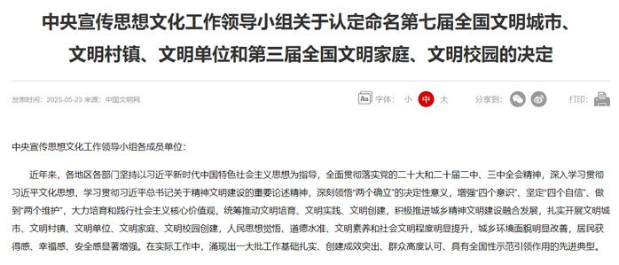 5月23日,全國(guó)精神文明建設(shè)表彰大會(huì)在京召開。會(huì)上傳達(dá)了習(xí)近平總書記對(duì)精神文明建設(shè)工作的重要指示,中共中央政治局常委、中央書記處書記蔡奇出席大會(huì)并講話。會(huì)議對(duì)全國(guó)文明城市、文明村鎮(zhèn)、文明單位、文明家庭、文明校園及未成年人思想道德建設(shè)等領(lǐng)域取得突出成績(jī)的集體和個(gè)人進(jìn)行了表彰。我校成功入選第三屆全國(guó)文明校園。