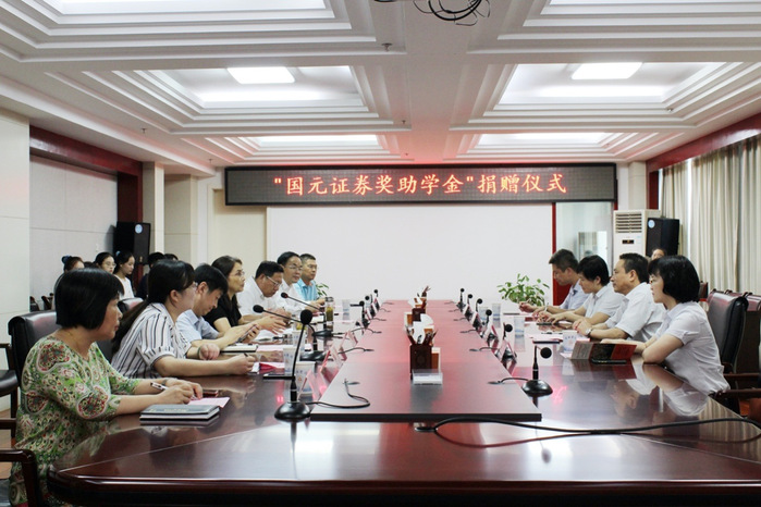9月16日下午,合肥學院舉行2020年度“國元證券獎助學金”捐贈儀式。國元證券股份有限公司黨委副書記、監事會主席、工會主席蔣希敏一行四人,合肥學院副校長、安徽中德教育合作基金會(以下簡稱基金會)理事長陳秀,校計劃財務處處長、基金會秘書長何世昆,校黨委委員、學生處處長、基金會事業發展部副部長朱濤,校經濟與管理學院院長陳江華等相關部門老師,以及獲得上一年度獎助學金的學生代表參加了捐贈儀式。儀式由基金會管理辦公室主任劉金平主持。