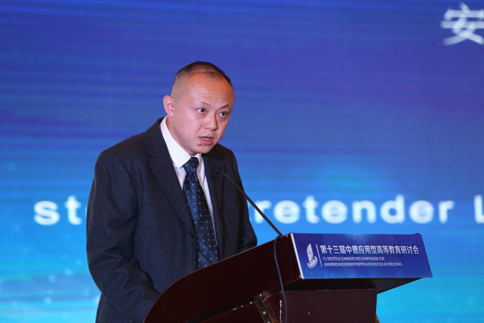 安徽省教育廳副廳長(zhǎng)儲(chǔ)常連表示,“十三五”以來(lái),安徽省不斷加大教育投入,大力支持高等教育發(fā)展,推動(dòng)合肥學(xué)院基礎(chǔ)設(shè)施和中德教育合作示范基地建設(shè),支持高峰學(xué)科建設(shè)和科研項(xiàng)目。合肥學(xué)院作為省市共建的一所地方應(yīng)用型本科高校,始終圍繞“立德樹(shù)人”的根本任務(wù),堅(jiān)持“地方性、應(yīng)用型、國(guó)際化”的辦學(xué)定位,在全國(guó)應(yīng)用型本科高校中發(fā)揮了示范引領(lǐng)作用,成為全國(guó)應(yīng)用型高校發(fā)展的標(biāo)桿。希望通過(guò)研討會(huì)的舉辦,進(jìn)一步聚焦智慧教育,進(jìn)一步探索應(yīng)用型大學(xué)“產(chǎn)教融合”的路徑,以改革創(chuàng)新的精神和高效有力的舉措,進(jìn)一步拓展中德高等教育交流合作新領(lǐng)域,打造中德務(wù)實(shí)合作的“升級(jí)版”,推動(dòng)應(yīng)用型大學(xué)服務(wù)創(chuàng)新驅(qū)動(dòng)發(fā)展,更好地發(fā)揮輻射和示范帶動(dòng)作用。