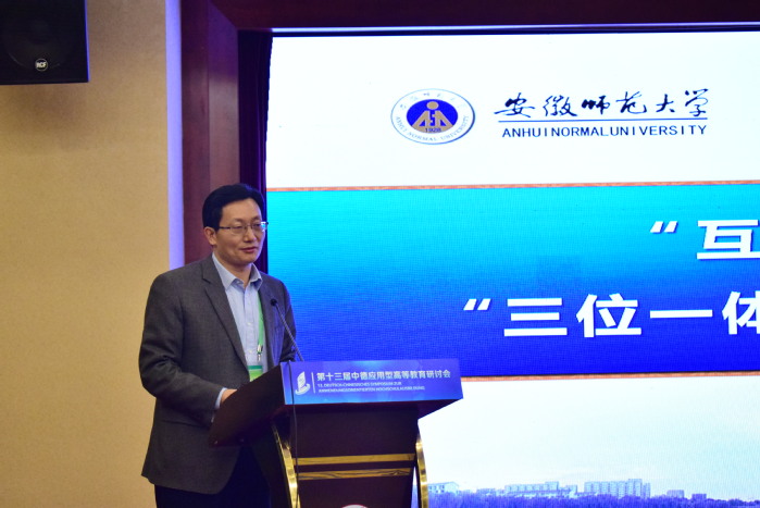 會議伊始,張慶亮結合“互聯網+”時代背景,從高等教育改革的理念和實踐等方面展開論述。他指出,第四次工業革命催生高等教育改革,在此背景下安徽師范大學堅持以學生為中心的教育理念,深度融合課內與課外、線上與線下、虛擬與現實三個“一體化”主張,形成開放式、個性化、多樣化的新型教學模式,致力于培養大學生完善的新時代君子人格。