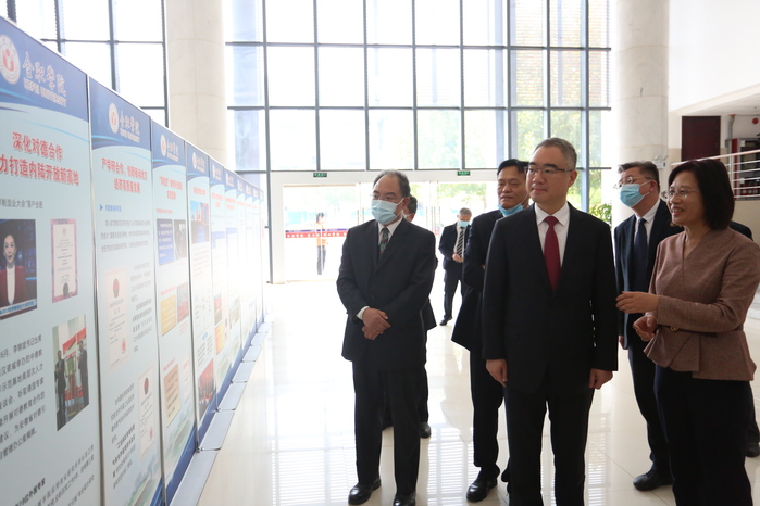 安徽省政府副秘書長(zhǎng)、省政府政研室主任葉曉明,中共安徽省委教育工委副書記、省教育廳廳長(zhǎng)趙振華,合肥市委常委、副市長(zhǎng)路軍,省外事辦公室副主任王年寶,省政府辦公廳副主任金宗順,中共安徽省委教育工委委員、省教育廳副廳長(zhǎng)張庚家,安徽大學(xué)黨委書記蔡敬民等陪同參觀。(黨委宣傳部)