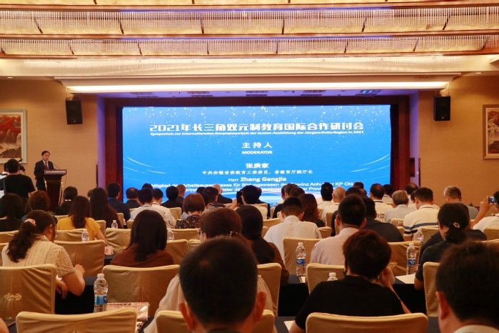 Am Morgen des 6. Juli fand in Hefei das Symposium zur internationalen Zusammenarbeit der dualen Ausbildung der Jangtse-Delta-Region statt, das vom Ministerum für Bildungswesen der Provinz Anhui gesponsert und von der Universit?t Hefei veranstaltet wurde. Mehr als 190 Vertreterinnen und Vertreter von 79 Hochschulen und Unternehmen nahmen an der Konferenz teil, um über Erfahrungen zur internationalen Zusammenarbeit in der dualen Ausbildung zu diskutieren und sich auszutauschen. Die Er?ffnungszeremonie wurde von Zhang Gengjia geleitet, einem Mitglied des Bildungs- und Industrieausschusses des Provinzkomitees der Kommunistischen Partei Chinas in Anhui und stellvertretender Direktor des Ministerums für Bildungswesen der Provinz Anhui.