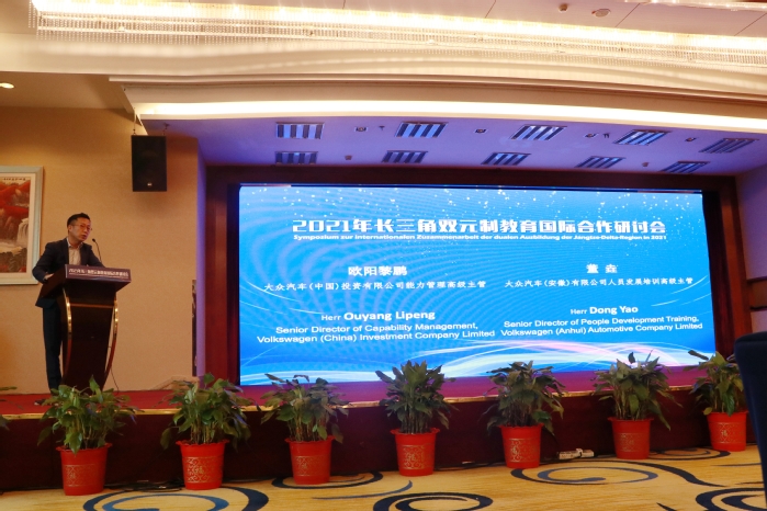 Dong Yao gab eine kurze Einführung in das Projekt des dualen Systems. Volkswagen Anhui werde die duale Ausbildung weiter f?rdern, das Projekt China-Germany Automotive Vocational Education weiter unterstützen, Kooperationen mit deutschen Hochschulen führen und anwendungsorietiere Sekundar- und Hochschulbildung in China f?rdern.
