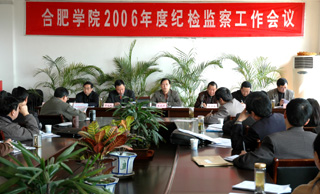 3月16日下午,“合肥學(xué)院2006年度紀(jì)檢監(jiān)察工作會議”在院北區(qū)5樓會議室召開。院領(lǐng)導(dǎo)和處級以上干部70余人出席會議。