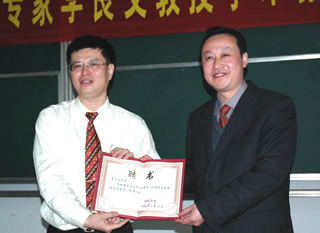蔡敬民副院長代表學院向李良義先生頒發客座教授證書