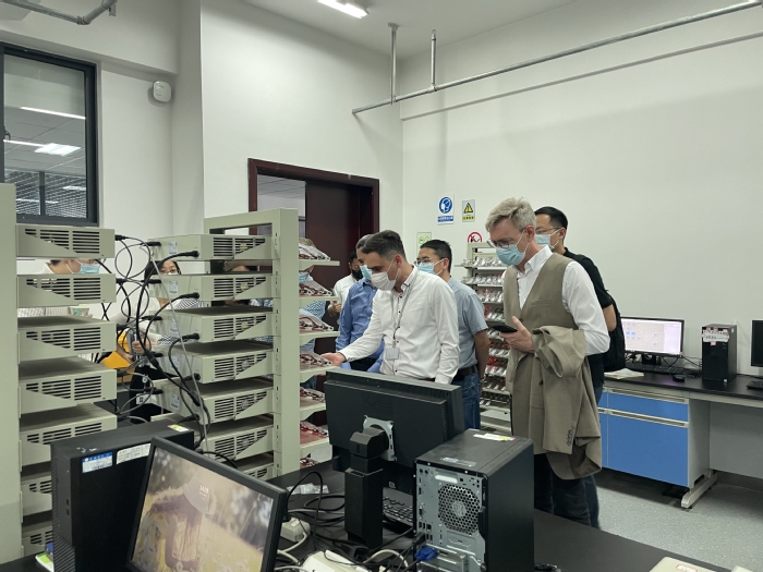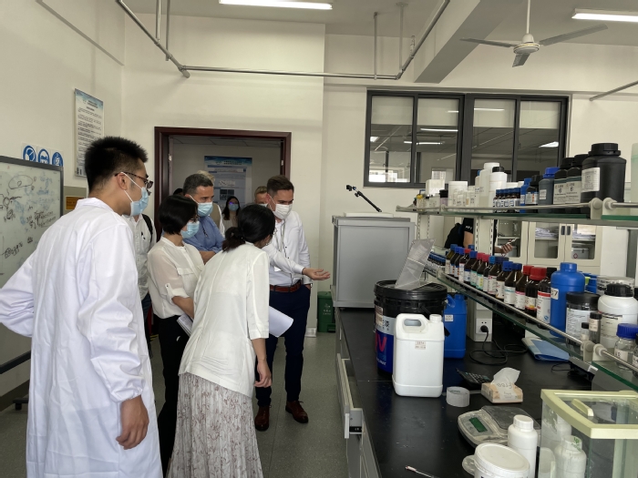 Die Expertengruppe besuchte zun?chst das technische Forschungszentrum der Universit?t Hefei und besichtigte daraufhin das Anhui Green Coating High Performance Auxiliary Engineering Research Centre, das Key Laboratory of Advanced Battery Key Materials and Technology und das Anhui Modern Electronic Control and Testing Application Technology Collaborative Innovation Centre, um über das gemeinsam von der Universit?t und den Unternehmen aufgebaute Forschungszentrum zu beraten.