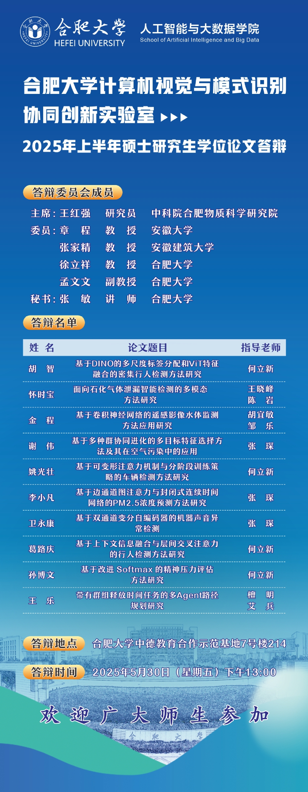 實驗室2025年上半年碩士研究生學位論文答辯預告