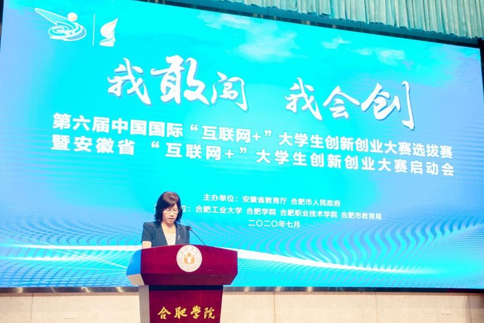 本屆大賽以“我敢闖,我會創”為主題,由安徽省教育廳與合肥市人民政府聯合主辦,合肥工業大學、合肥學院、合肥職業技術學院、合肥市教育局共同承辦。省教育廳副廳長儲常連、合肥市人民政府副秘書長吳昌文、合肥學院黨委書記王其東、合肥工業大學黨委副書記陳剛、合肥職業技術學院黨委書記羅兆好、合肥市教育局二級調研員唐文水出席啟動會,會議由我校校長吳春梅主持。
