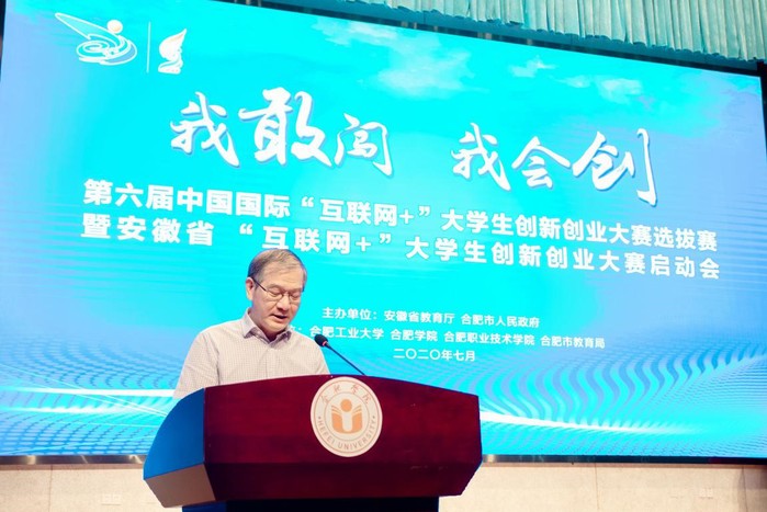 啟動會上,省教育廳副廳長儲常連充分肯定了我省在第五屆中國“互聯網+”大學生創新創業大賽中成績創新高。雖受疫情影響,2020年第六屆“互聯網+”大學生創新創業大賽省賽推遲了1個多月,但辦賽總目標不變,要求更高。儲常連在講話中強調,首先要提高政治站位,充分認識大賽在人才培養中的重要性,落實好“六穩”“六保”任務,促進大學生就業工作。其次要扎實推進,全力辦好大賽。要強化組織領導,各地各高校要指定責任人,明確目標任務,充分考慮疫情防控因素,確保各項工作落到實處。三是要厲兵秣馬,力爭在第六屆全國總決賽中再創佳績,安徽省高校創新創業教育改革成績要再創新高,合肥大湖名城、創新高地的知名度和美譽度要再創新高。