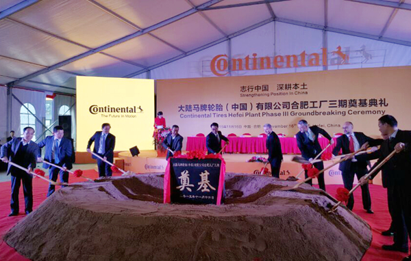 當日,合肥市市長張慶軍、大陸集團輪胎事業部執行副總裁博卡·科勒、合肥海關副關長賈江、大陸集團乘用車胎部亞太區執行副總裁馮賀飛、合肥市常務副市長韓冰等出席了奠基典禮。