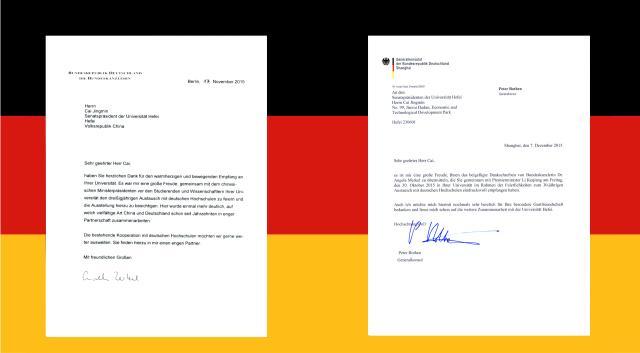 12月7日,德意志聯(lián)邦共和國駐上海總領(lǐng)事館總領(lǐng)事羅騰先生向我校蔡敬民書記轉(zhuǎn)呈了德國總理安格拉·默克爾的感謝信,并表示“期待能與合肥學院再次合作”。默克爾總理在感謝信中對我校在她訪問期間所作的精心安排和溫馨感人的接待表示衷心感謝,并表示:合肥學院與德國高校三十年的合作交流“又一次有力地表明了,幾十年來中國和德國以多姿多彩的方式進行了密切的伙伴合作”。“我們很愿意進一步擴大貴校與德國高校間現(xiàn)有的合作,在此方面,我樂意成為你們的密切合作伙伴”。