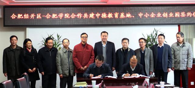 在雙方友好協(xié)商的基礎(chǔ)上,雙方就中德教育示范基地和中德中小企業(yè)創(chuàng)業(yè)園項(xiàng)目達(dá)成一致意見,張文兵和楊偉共同簽署了《合作共建中德教育示范基地和中德中小企業(yè)創(chuàng)業(yè)園框架協(xié)議》。協(xié)議旨在落實(shí)李克強(qiáng)總理視察合肥有關(guān)指示精神,服務(wù)經(jīng)開區(qū)“調(diào)轉(zhuǎn)促”發(fā)展戰(zhàn)略,按照合肥市政府對(duì)德合作專題會(huì)議紀(jì)要關(guān)于經(jīng)開區(qū)要利用合肥學(xué)院等創(chuàng)新資源,“加快建立‘中德中小企業(yè)創(chuàng)業(yè)園’,打造‘大眾創(chuàng)業(yè)、萬(wàn)眾創(chuàng)新’合作示范平臺(tái)以及中德青年交流合作基地”的要求,深化經(jīng)開區(qū)、合肥學(xué)院與德國(guó)在科教、經(jīng)貿(mào)、產(chǎn)業(yè)領(lǐng)域的交流合作,通過(guò)多種形式,共同合作推進(jìn)中德教育合作示范基地建設(shè),搭建中德企業(yè)合作創(chuàng)新平臺(tái)。