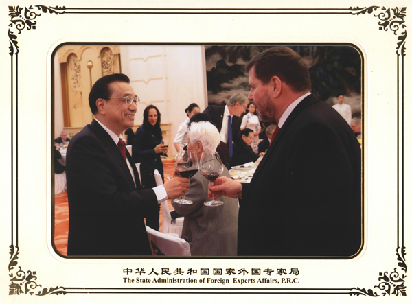 國務院總理李克強2月5日下午在人民大會堂親切會見在華工作的部分外國專家并同他們座談。我校客座教授、德國施特拉爾松德應用科學大學校長法爾克·霍恩、我校韓籍教授趙誠惠、樸南奎夫婦,作為在皖外國專家代表出席了座談,其中霍恩教授作為僅有的四位發言代表之一,重點就“中國制造2025”與“應用型高等教育改革”作了發言,并就我校“中德教育合作示范基地”籌建情況作了簡要匯報。