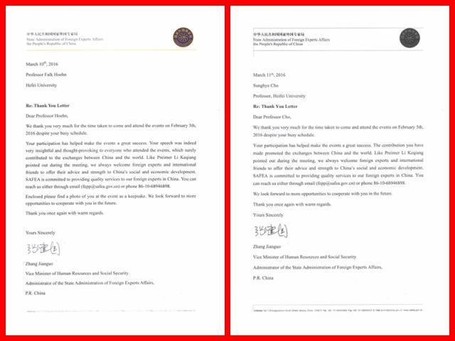 近日,國家人力資源和社會保障部副部長、國家外國專家局局長張建國致信我校兩位外國專家,對其于今年2月5日在京出席與李克強總理的新春座談會等事宜表示感謝。