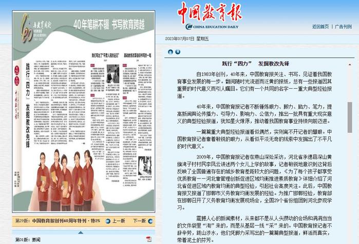 來源:《中國教育報》2023年07月07日第29版 版名:與教育同行 中國教育報創刊40周年特刊(1983-2023) 40年筆耕不輟 書寫教育跨越
