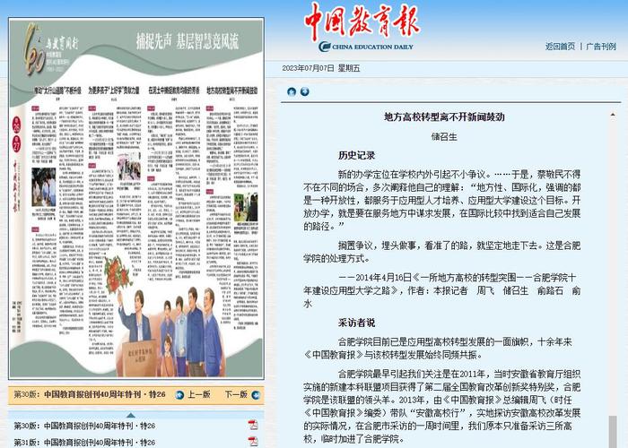 合肥學院目前已是應用型高校轉型發展的一面旗幟,十余年來《中國教育報》與該校轉型發展始終同頻共振。