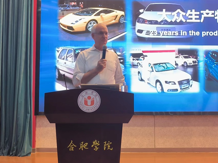 10月31日,學校客座教授、大眾安徽首席制造官施耐德教授在圖書館學術報告廳為大眾學院2022級學生上了一堂內(nèi)容豐富生動的先進制造和智能網(wǎng)聯(lián)專業(yè)課。