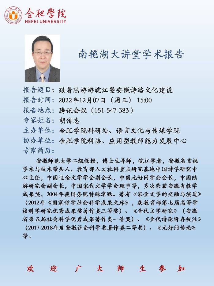 【講座預(yù)告】跟著陸游游皖江暨安徽詩路文化建設(shè)