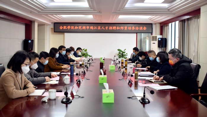 為進一步深化校地合作,1月13日,蕪湖市鳩江區人大常委會副主任許洋率隊來校洽談人才招聘和師資培養相關事宜,并簽訂教育合作協議。院長吳春梅和副院長盧平出席座談會,黨政辦、學生處、科研處、人工智能與大數據學院、教育學院負責同志參加會議。會議由盧平主持。