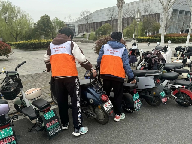 活動過程中,人工智能與大數據學院的志愿者身著統一橙白馬甲,分別負責教學區、宿舍區及校門口等車輛停放問題較為突出的重點區域有序開展車輛擺放工作。志愿者們不懼辛苦,將隨意停放的電動車、自行車移至規定區域,擺放整齊同時面對停車不規范的同學,志愿者們展現出高度的責任心和耐心,積極開展勸導工作,普及文明停車的重要性,倡導“停車入位、擺放整齊、共建共享”的停車理念,引導同學們養成良好的停車習慣。