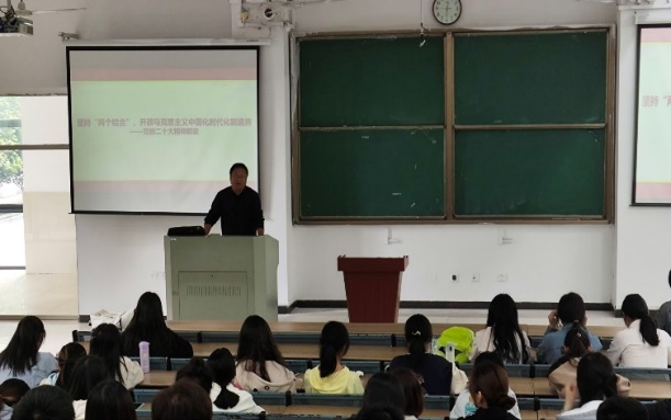本次黨課由校宣傳部部長賈峰老師主講,以“堅持‘兩個結合’” —黨的二十大精神解讀”為主題。通過專題演講、案例分析、互動交流等多種形式全面系統地學習了意識形態工作是為國家立心為民族立魂的工作、深刻認識意識形態工作的重要性、黨的二十大關于意識形態工作的戰略部署、建設具有強大凝聚力和引領力的社會主義意識形態等內容。