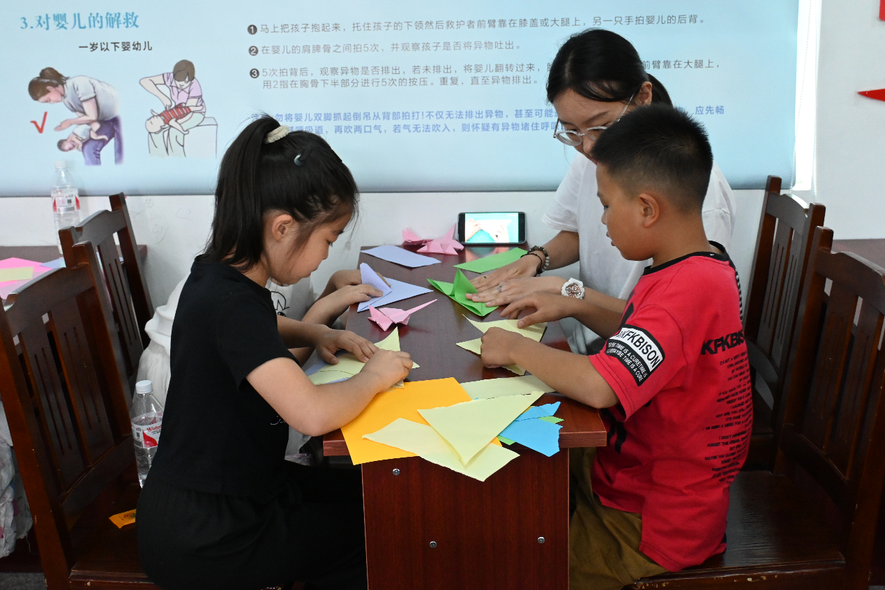 接著就到了有趣的折紙活動。折紙不僅是一種藝術(shù),更是一種能夠鍛煉孩子們耐心與觀察能力的活動。志愿者們耐心地指導(dǎo)每一個孩子,孩子們在折紙的過程中不斷嘗試,當(dāng)一件作品完成時,他們的臉上洋溢著滿足與自豪的笑容。