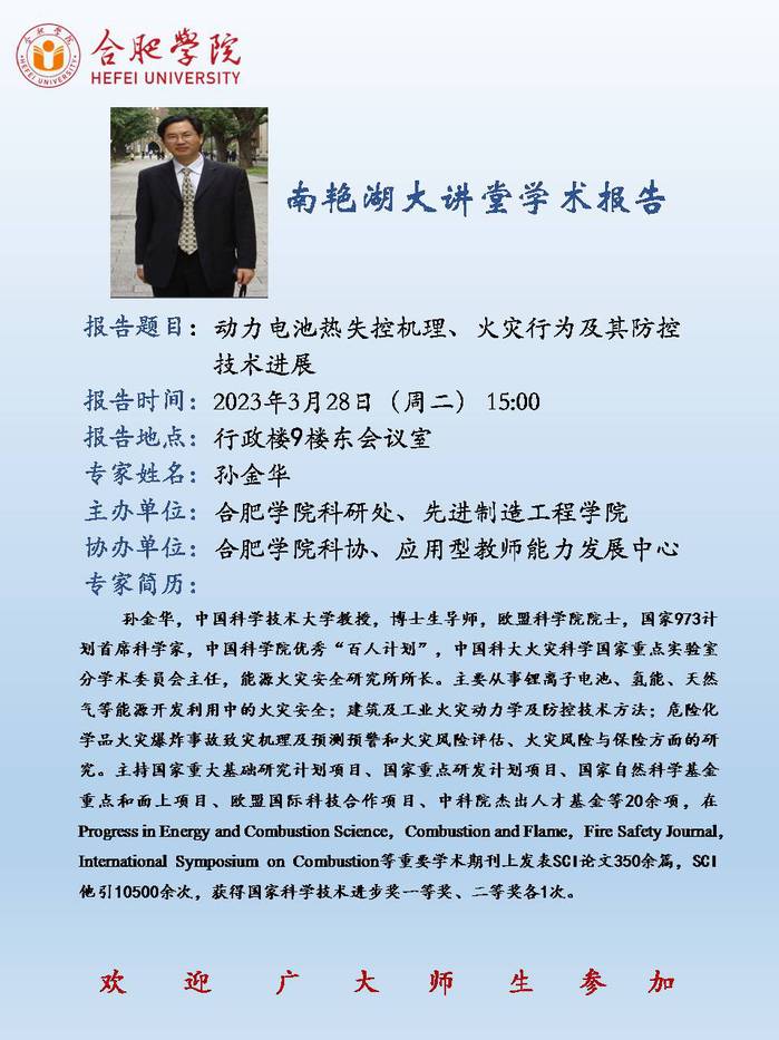 【講座預(yù)告】動(dòng)力電池?zé)崾Э貦C(jī)理、火災(zāi)行為及其防控技術(shù)進(jìn)展