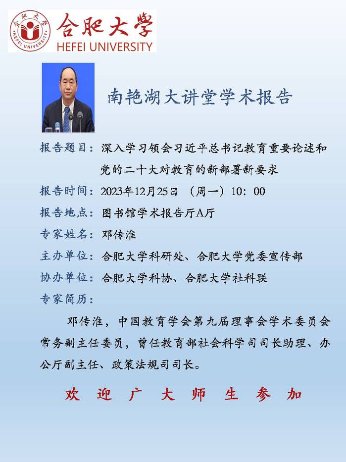 【南艷湖大講堂】深入學習領會習近平總書記教育重要論述和黨的二十大對教育的新部署新要求