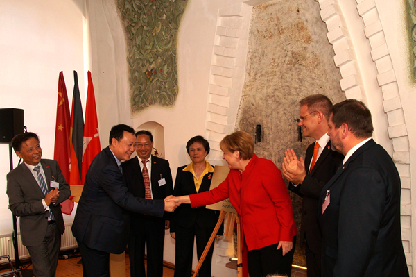 雙方致辭后,默克爾與許琳等共同為孔子學院揭牌,這是默克爾本人及德國現任總理首次為孔子學院揭牌。