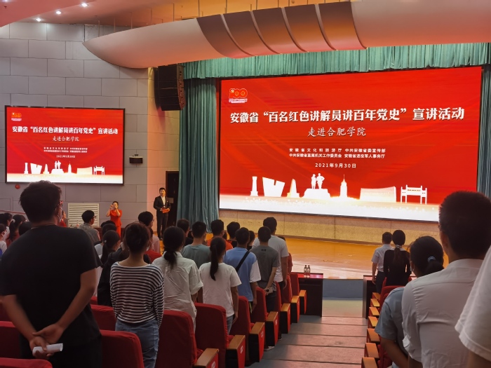 9月30日,安徽省“百名紅色講解員講百年黨史”宣講活動走進合肥學院。活動現場播放了長三角紅色旅游宣傳片和長三角紅色旅游精品線路動畫,講解員飽含深情地講述了中國共產黨團結帶領人民進行革命、建設、改革偉大實踐的故事,深情禮贊黨的百年奮斗歷程。《我是一套永不褪色的軍裝》《齊進虎的木盆》《一封家書》《朱將軍的筆記本》《江防圖》……一個個經典感人的紅色故事,一段段直抵心靈的革命征程,詮釋黨歷經百年而風華正茂、飽經磨難而生生不息的偉大精神,引發在場師生強烈共鳴。活動最后,全體師生起立,共唱《我和我的祖國》,為祖國華誕高歌,向建黨百年致敬!旅游與會展學院的學生們在本次活動中深受啟發,紛紛表示:體驗紅色文化為旅行賦予了更深刻的意義,這正是紅色旅游的魅力所在。往后將結合自身專業知識,緊緊圍繞愛黨愛國愛社會主義主題,聚焦黨在安徽各個歷史時期淬煉鍛造的“大別山精神”“新四軍精神”“渡江精神”“小崗精神”等偉大精神,充分發掘紅色文化的內涵,為紅色旅游充實內容、提升品位。