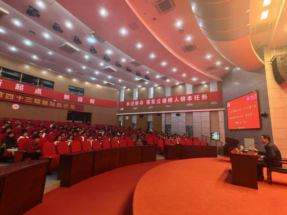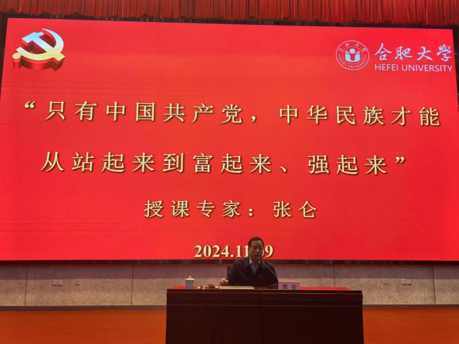 11月9日下午,合肥大學2024年入黨積極分子培訓班理論授課第二講在圖書館報告廳A舉行,本次黨課主講人由安徽省高級人民法院原二級巡視員、省委選派非公黨建指導員張侖進行授課,共77名黨校成員參加本次課程,黨課主題為“只有中國共產黨,中華民族才能從站起來到富起來,強起來”。