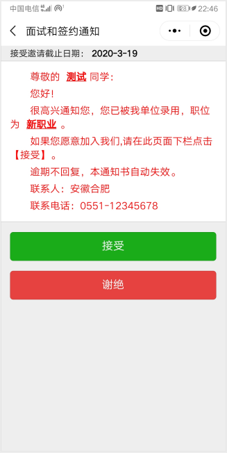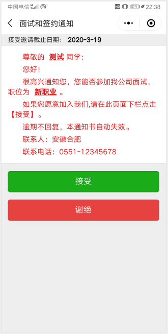 第三步、畢業生收到面試通知,并選擇是否接受面試邀請。