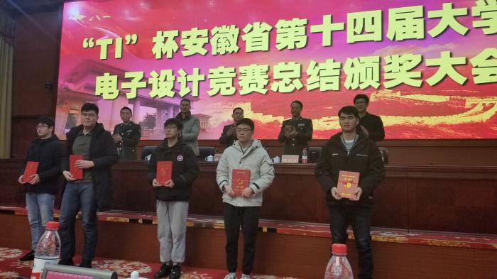 頒獎會于1月4日在國防科技大學電子對抗學院舉行,安徽省教育廳高教處副處長朱永國,安徽省電子設計競賽組委會執行主任張建云、組委會委員魯昌華教授等出席。合肥學院教務處副處長儲忠,大學生創新創業教育中心主任劉沛平,先進制造工程學院實驗中心主任高先和,合肥學院電子設計競賽負責人李翠花,指導老師周澤華、李瑤、馮玉武等老師參加了頒獎會。