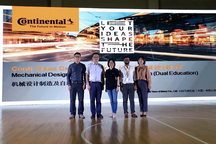 2020級大陸班招新宣講會于9月22日在合肥學院體育館正式舉行。大陸馬牌輪胎(中國)有限公司人力資源總監孫怡、大陸集團合肥工廠招聘經理劉喬松、大陸集團產品工業化部總監Kumar,我校國際交流合作處副處長張慧、先進制造工程學院院長呂剛、雙元制大陸班專業負責人張光洲等人參加了本次活動。