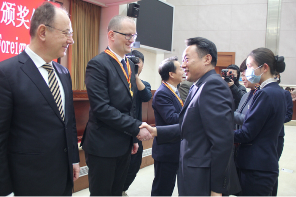 On the morning of December 16, 2020, Hefei Municipal Government holds a ceremony of the Third Hefei Friendship Award for foreign experts in Hefei. Yu Aihua, Secretary of Hefei Municipal Party Committee, and Ling Yun, Mayor of Hefei, award medals and honorary certificates to those experts. Prof. Dr. Thomas Weise, a German professor of Hefei University, is awarded the Hefei Friendship Award.