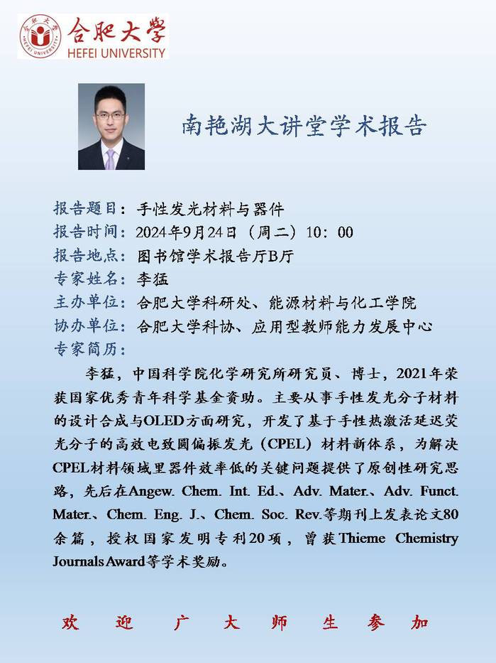 【南艷湖大講堂】手性發光材料與器件