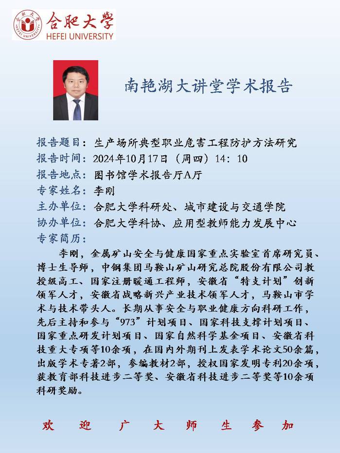 【南艷湖大講堂】生產場所典型職業危害工程防護方法研究