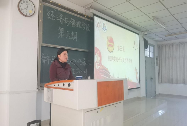11月26日中午,合肥大學經濟與管理學院第六期青年馬克思主義者培養工程開班典禮暨第一講于一期五棟101教室舉行。經管學院黨委副書記夏丹青出席并發表講話,院團委老師程越岳、第一屆團委學生會成員及24級新生班干參加學習,第一講由學院團委學生兼職副書記張敬磊同學主持。