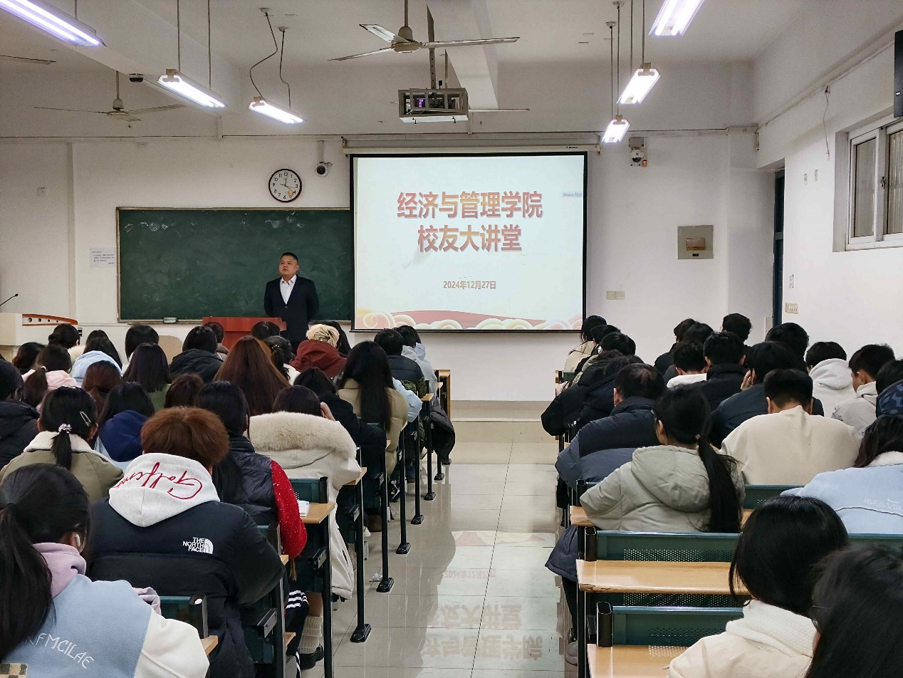 12月27日下午,《經管學院校友大講堂》系列講座在一期教學樓4棟301教室順利舉行。本次活動邀請了經管學院2013級國際經濟與貿易專業優秀校友代表,現任中國銀行合肥包河支行公司客戶經理的王則清主講。我院各年級、各專業本科生及研究生參加學習。