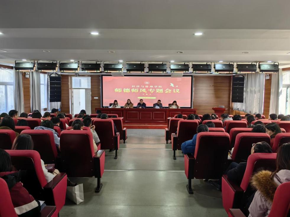 為進(jìn)一步加強(qiáng)學(xué)院師德師風(fēng)建設(shè),提升教師隊(duì)伍素質(zhì),2月18號(hào)下午,經(jīng)濟(jì)與管理學(xué)院于一期學(xué)術(shù)報(bào)告廳召開了2024-2025學(xué)年第二學(xué)期師德師風(fēng)專題會(huì)議。會(huì)議由經(jīng)管學(xué)院黨委書記倪澤強(qiáng)主持,學(xué)院全體教職工參加會(huì)議。