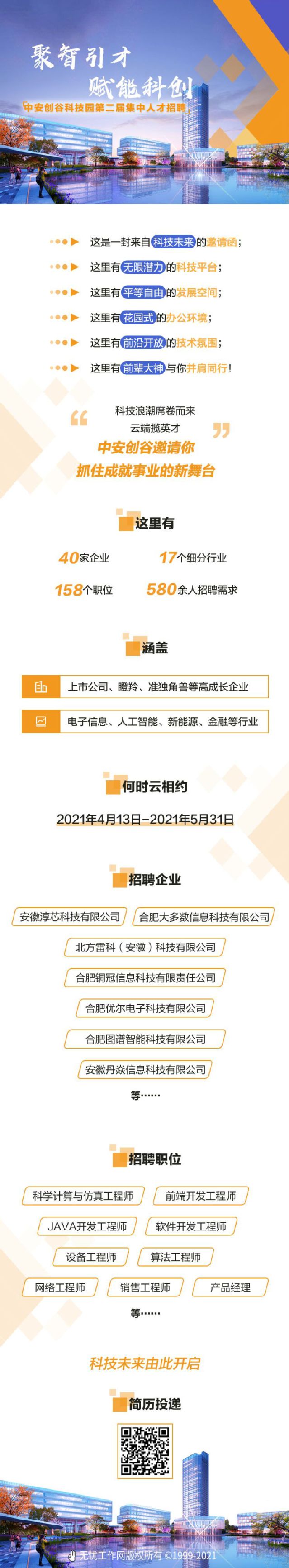 【招聘信息】中安創(chuàng)谷科技園第二屆集中人才招聘