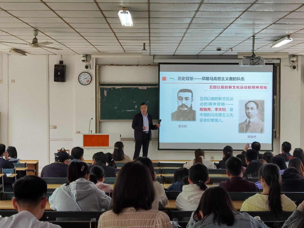 為慶賀中國共產黨百年誕辰,深入開展黨史學習教育,2021年4月27日,我院舉行黨史學習教育專題報告會,邀請馬克思主義學院姜從山教授作題為《中共一大及其代表的最終歸宿》的黨史專題報告。