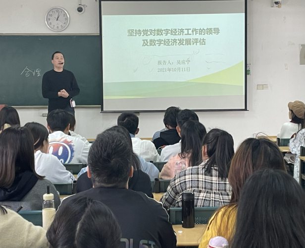 此次講座主題為“堅持黨對數字經濟工作的領導及數字經濟發展評估”,吳應寧老師從數字經濟概念、數字經濟發展概況、堅持黨對數字經濟工作的領導和數字經濟發展評估等方面進行了詳細講解,并認為數字經濟是未來經濟發展的大趨勢。最后,吳老師指出,數字經濟發展的不確定性依然存在,我們應當堅持以習近平講話精神為指導,堅持黨對數字經濟工作的集中統一領導,積極學習大數據知識,強化大數據思維,服務于社會大數據應用,把黨中央關于數字經濟發展的決策部署落到實處。